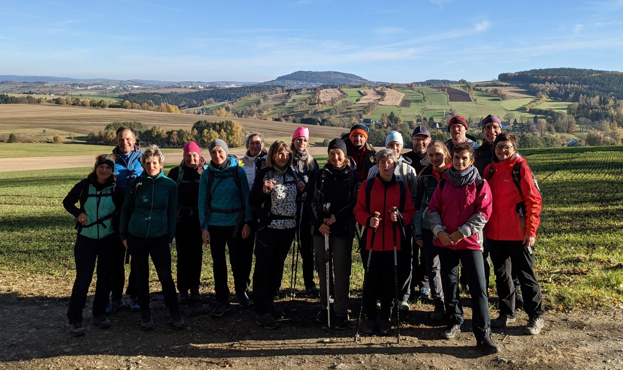 Am Sonntag, den 24. Oktober 2021, war es wieder so weit: eine Wanderung vom Fichtelberg aus nach Thum stand auf dem Programm. Bei herrlichem Herbstwetter starteten zahlreiche Wanderfreunde am zeitigen Vormittag mit dem Bus von unserer Heimatstadt Thum aus gen Oberwiesenthal. Ein traumhaftes Panorama bot sich bei der Ankunft an unserem Startpunkt. Die beiden höchsten Berge des Erzgebirges lagen uns wolkenlos und von der Sonne bestrahlt nach wenigen Schritten wortwörtlich zu Füßen. Die Route führte uns vorbei am Auslauf der Himmelsleiter durch den malerischen Wald nach Kretzscham – Rothensehma – zur Miniaturpyramide und von dort aus zur Trinkwassertalsperre Cranzahl. Nach einer kurzen Mittagsrast bei stürmischen Verhältnissen ging es weiter über die Waltersdorfer Höhe nach Schlettau. Im Naturbad Schlettau angekommen überraschte uns Frank Wolf und seine fleißigen Helfer mit Kaffee und Kuchen als kleine Stärkung. Dörfel, Tannenberg und die Greifenbachmühle passierten wir auf dem letzten Teil unserer Strecke, bevor wir an den Geyrischen Schanzen vorbei den Greifensteinwald Richtung unseres Ausgangspunktes durchquerten. Nach ca. 8 Stunden und 37 gelaufenen Kilometern erreichte die gesamte Wandergruppe, teilweise stark geschwächt, aber glücklich über die absolvierte Leistung, das Ziel. Es war für alle ein sehr schöner Ausflug mit netten Gesprächen, bei welchem das Wetter hätte nicht besser sein können. Die Teilnehmer bedanken sich recht herzlich für das Aussuchen der Wanderroute bei Ralf Schädlich und für die wie immer optimale Organisation bei Annett und Frank Wolf.