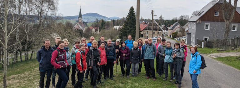 …haben wir das sächsische Erzgebirge bei unserer diesjährigen Frühjahrswanderung des LSV Waldfrieden Thum e.V. gesehen und erkundet. Von Oberwiesenthal ging es unter fachkundiger Führung bei strahlendem Sonnenschein zu Fuß  über den Grenzübergang nach Loučná ins böhmische Erzgebirge. Unsere 1. Station…