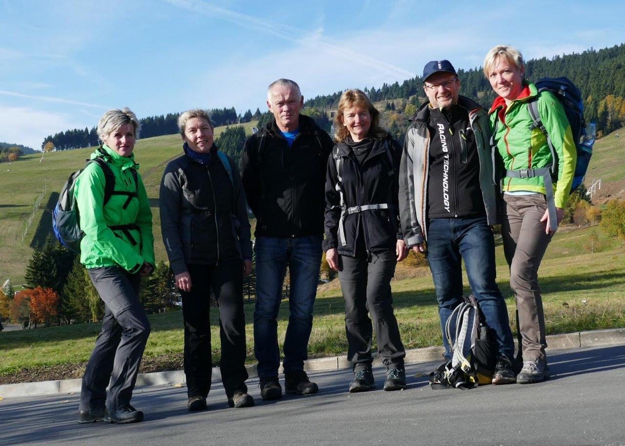 Unsere diesjährige Wanderung von Oberwiesenthal nach Thum fand bei herrlichem Wetter am 20. Oktober statt. Sechs Wagemutige starteten mit dem ersten Bus in die höchste Stadt Deutschlands. Von da aus ging es über Crottendorf, Waltersdorf und Schlettau nach Tannenberg. In der Bäckerei Bräunig stärkte man sich mit Kaffee und Kuchen und begab sich anschließend frohgelaunt auf die letzte Etappe durch das schöne Greifensteingebiet gen Heimat. Wir kamen mit strahlenden Gesichtern, aber auch etwas geschafft nach 36 Kilometer vor Einbruch der Dämmerung in unserem Heimatstädtchen Thum an.